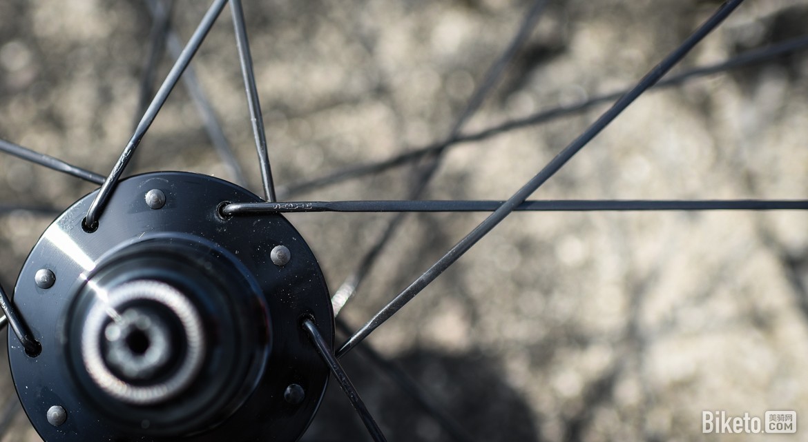 ▲虽然是弯头,但仍为比利时辐条大厂Sapim的CX Sprint辐条搭配黄铜条帽,比CX-RAY稍重,但强度、刚性更好