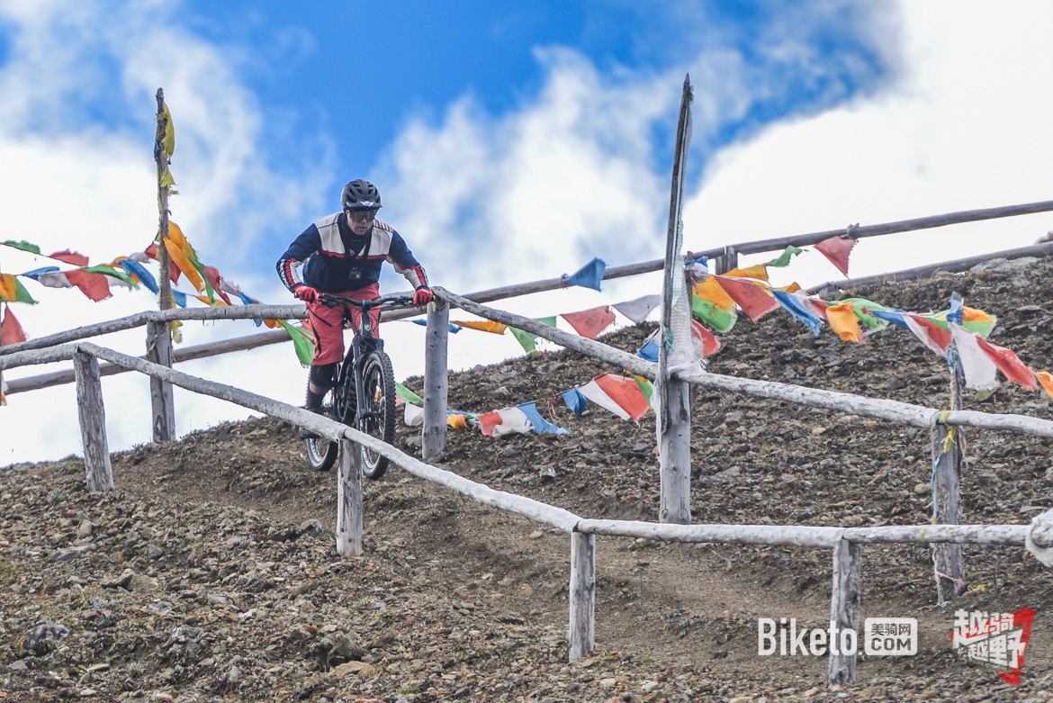 ▲到达我们适应性骑行的第一个地点——雅哈垭口,车手们要推车到山顶,然后俯冲而下。